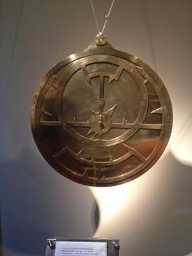 İlk olarak astronomi bölümünden başlayabiliriz. Fotoğrafta gördüğünüz bir usturlab. Usturlab astronomi ölçümlerinde güneşin, ayın, gezegenlerin ve yıldızların konumlarını belirlemek için kullanılan tarihi bir ölçüm aracı olarak kullanılıyor. Aynı zamanda yerel saatin ve İslam dininde namaz vakitlerinin belirlenmesinde, bazı matematik problemlerinin çözülmesinde de kullanılıyor. Astronomi bölümünün ilgi çeken parçalarından biri…