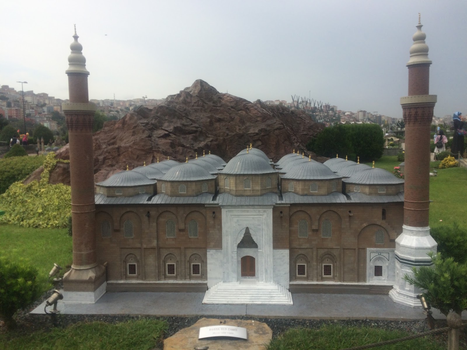 Zaten bu yapıları görüp de düşünmeyen bizden değildir! 🙂 Şimdi geliyoruz ; İskenderi ile ünlü bir şehrimize. Yani nereye? Bursa’ya 🙂 Bursa’da yapılış nedeni ile en ilgimi çeken cami olan ; Ulu Cami’ye de Miniaturk’un en güzel yerlerinden biri ayrılmış. Bu arada , Ulu Cami’nin yapılış nedenini bilmeyen varsa kısaca açıklayayım ; Yıldırım Beyazıt Niğbolu kuşatmasını kazanırsa 20 cami yaptırmayı vaad eder. Zafer onun olur ve sonrasında damadının tavsiyesi üzerine 20 cami yerine 20 kubbeli cami yaptırır.